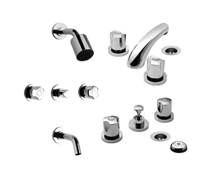 – Linea: Set de griferia para baño, incluye griferia para lavatorio, bide y ducha de embutir con transferencia